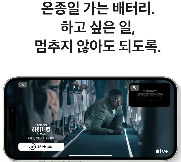 배터리 성능 최대 26시간 동영상 재생 Iphone 15 plus