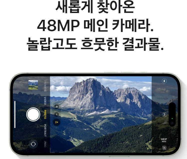 새로운 48 MP 카메라 초고해상도 사진 2배 망원
